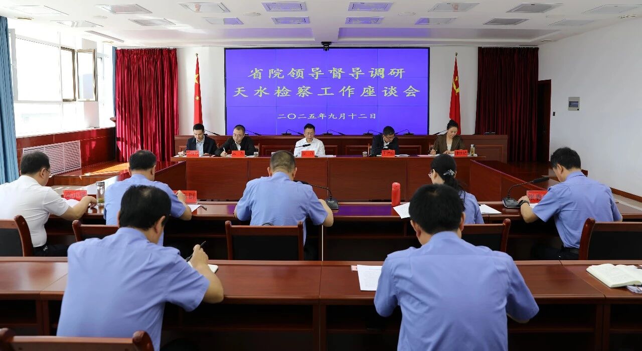 在听取市、县两级检察院工作汇报后,沈涧对天水检察工作给予充分肯定。他强调,这次省检察院集中督导调研,既是对各地工作成效的实地检验,更要对省检察院党组主抓的几项重点工作进行督促指导,不仅要发现亮点、总结经验,更要直击痛点、疏通堵点,为年底收官凝聚智慧、积蓄力量。