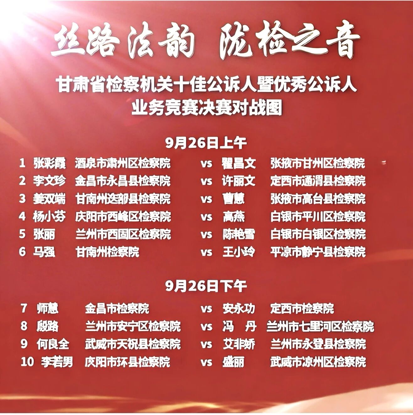 9月25日,“丝路法韵 陇检之音”2025年甘肃省检察机关十佳公诉人暨优秀公诉人业务竞赛、第四届全省检察机关未成年人检察业务竞赛进入第四个比赛日,赛事采用“刑事检察论辩+未成年人检察宣讲”双赛道进行,未成年人检察法治宣讲情理交融、润物无声,刑事检察论辩赛场唇枪舌剑、精彩绝伦,两大舞台共同呈现出新时代陇检干警刚柔并济、文武兼修的良好局面。