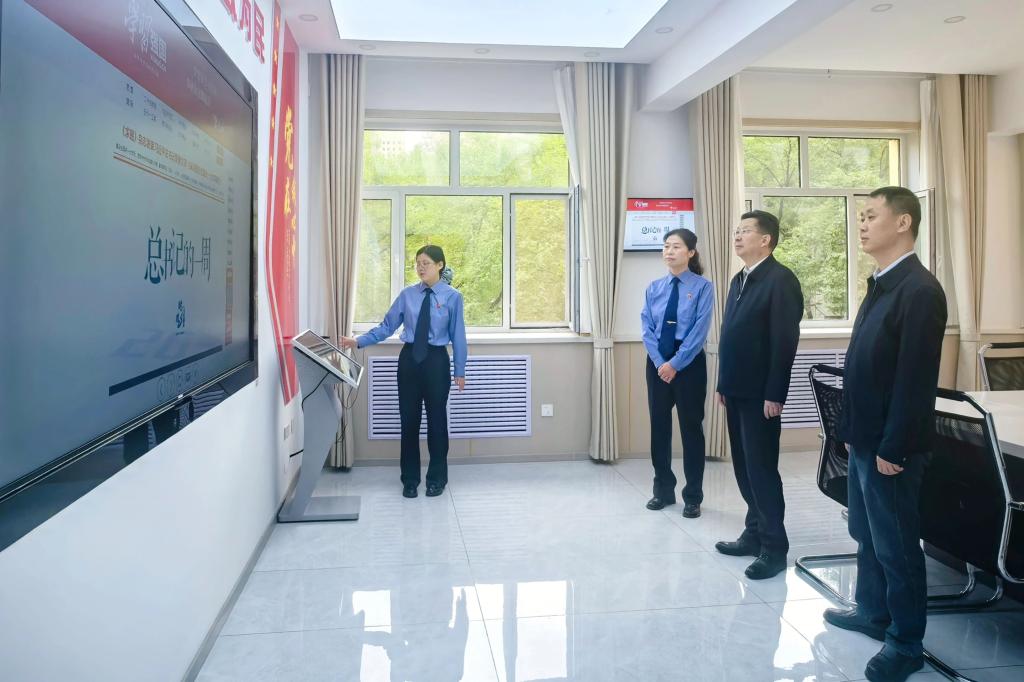 调研组了解永靖县检察院12309检察服务中心、“小靖龙”未成年人检察办公室等工作情况,现场观摩案件质量评查智能系统的操作运用,并开展座谈交流。