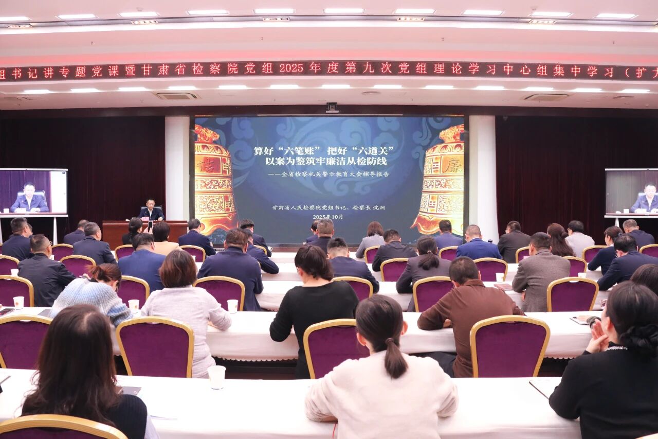 10月27日下午,甘肃省检察院组织开展党组书记讲党课暨甘肃省检察院党组2025年度第九次党组理论学习中心组集中学习(扩大)会议,省检察院党组书记、检察长沈涧在为全省三级检察院全体干警做辅导时强调,要算好政治账、经济账、家庭账、风险账、自由账、健康账“六笔账”,把好权力关、初始关、小节关、节庆关、亲情关、交友关“六道关”,以案为鉴筑牢廉洁从检防线。