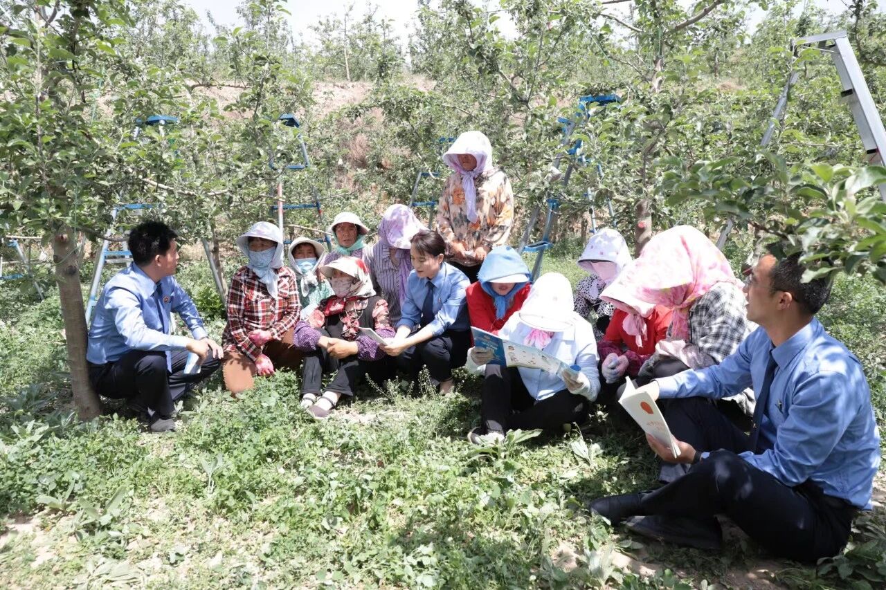 2024年5月20日,庄浪县检察院干警来到田间地头,在苹果树下开展普法活动。