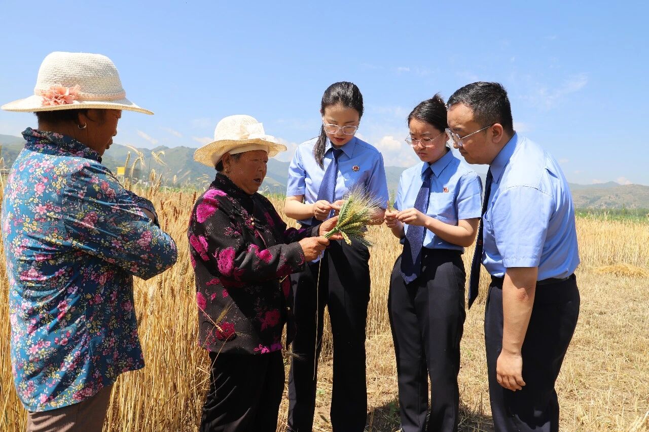 2025年7月4日,张掖市甘州区检察院干警在明永镇通过实地了解当地种业发展的实际需求,筑牢农业生产安全防线。