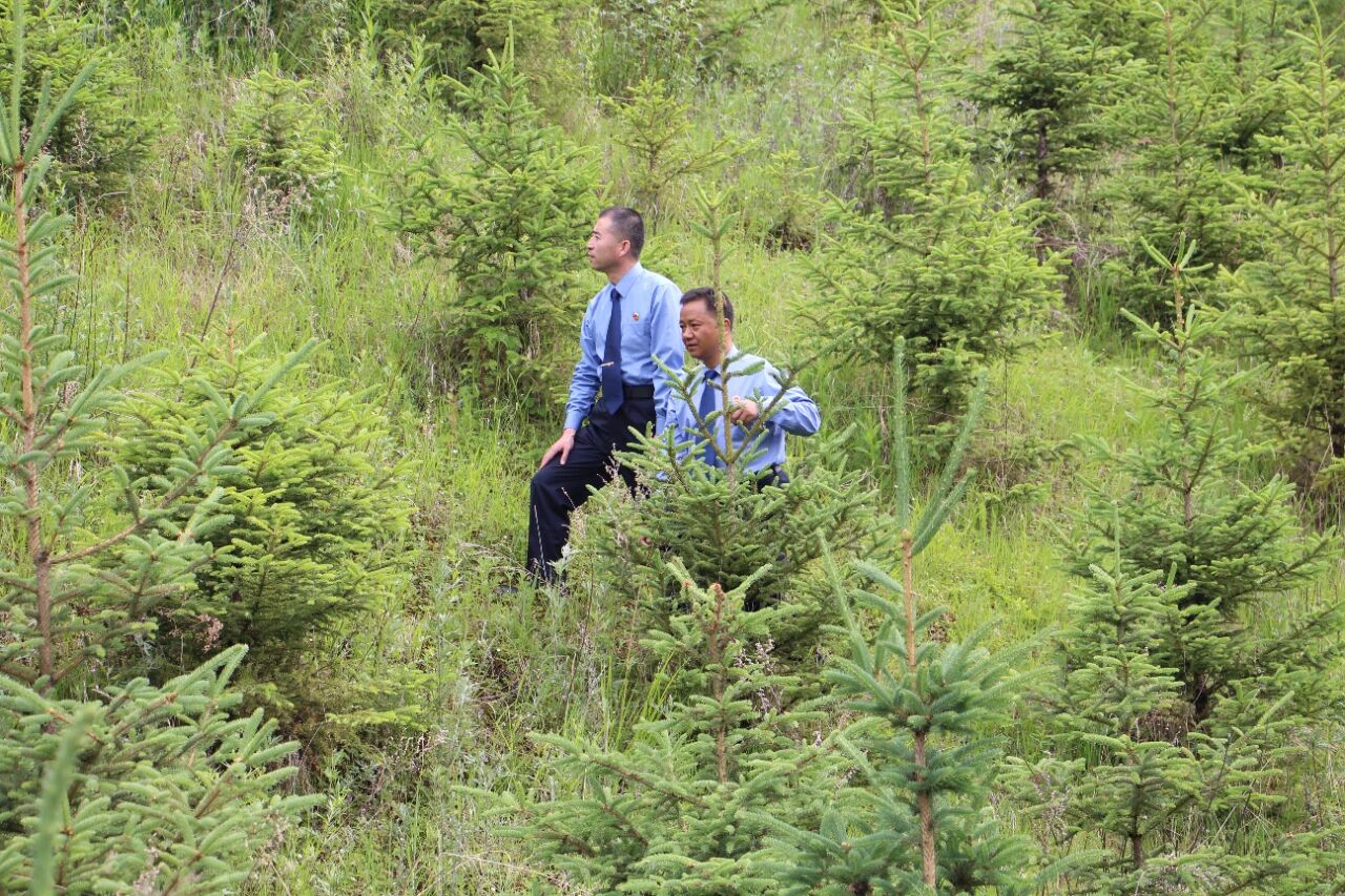 2024年6月18日,祁连山林区检察院干警到检察公益林实地察看。