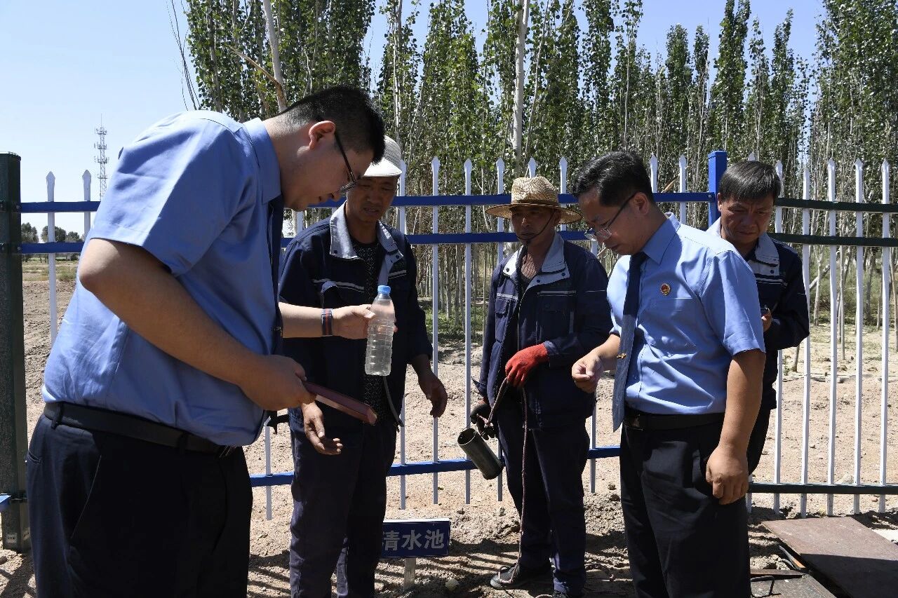 2022年7月,玉门市检察院干警赴该市赤金镇某服务区南侧污水处理站取样,就检察建议整改情况开展“回头看”,同时对辖区内其他污水处理站进行跟进监督。
