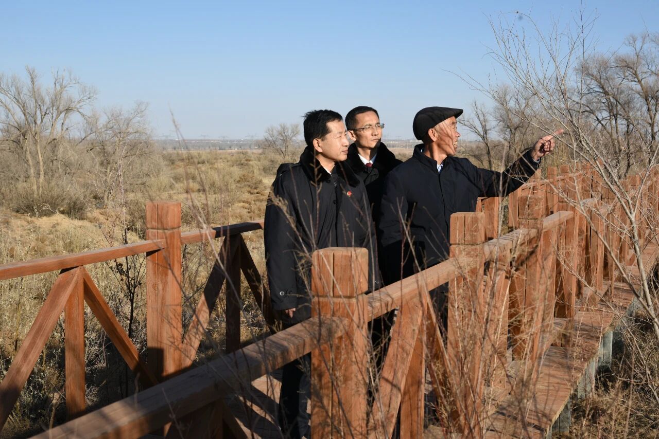 2025年12月,古浪县检察院邀请“时代楷模”,八步沙林场党支部书记、场长,第二代治沙人代表郭万刚深入治沙核心区域,实地查看治沙成果和管护情况,并向他征求对生态环境保护公益诉讼的意见建议。