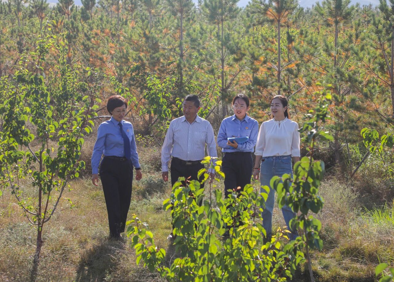 2025年8月,武威市凉州区检察院干警会同区林草局林业技术人员一同查看“检察碳汇林”成活情况。