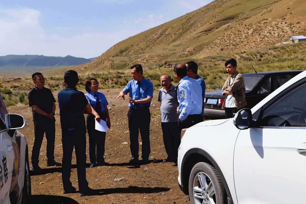 2024年8月,山丹县检察院干警前往山丹县大青阳口滩开展环境污染巡查工作,现场勘查生态环境现状。