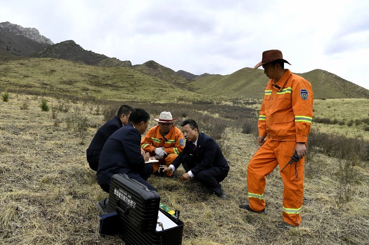 2022年6月,祁连山林区检察院干警和祁连山管护中心祁连自然保护站工作人员对生态修复基地的补植复绿情况进行回访,并利用公益诉讼取证设备开展土壤监测分析。