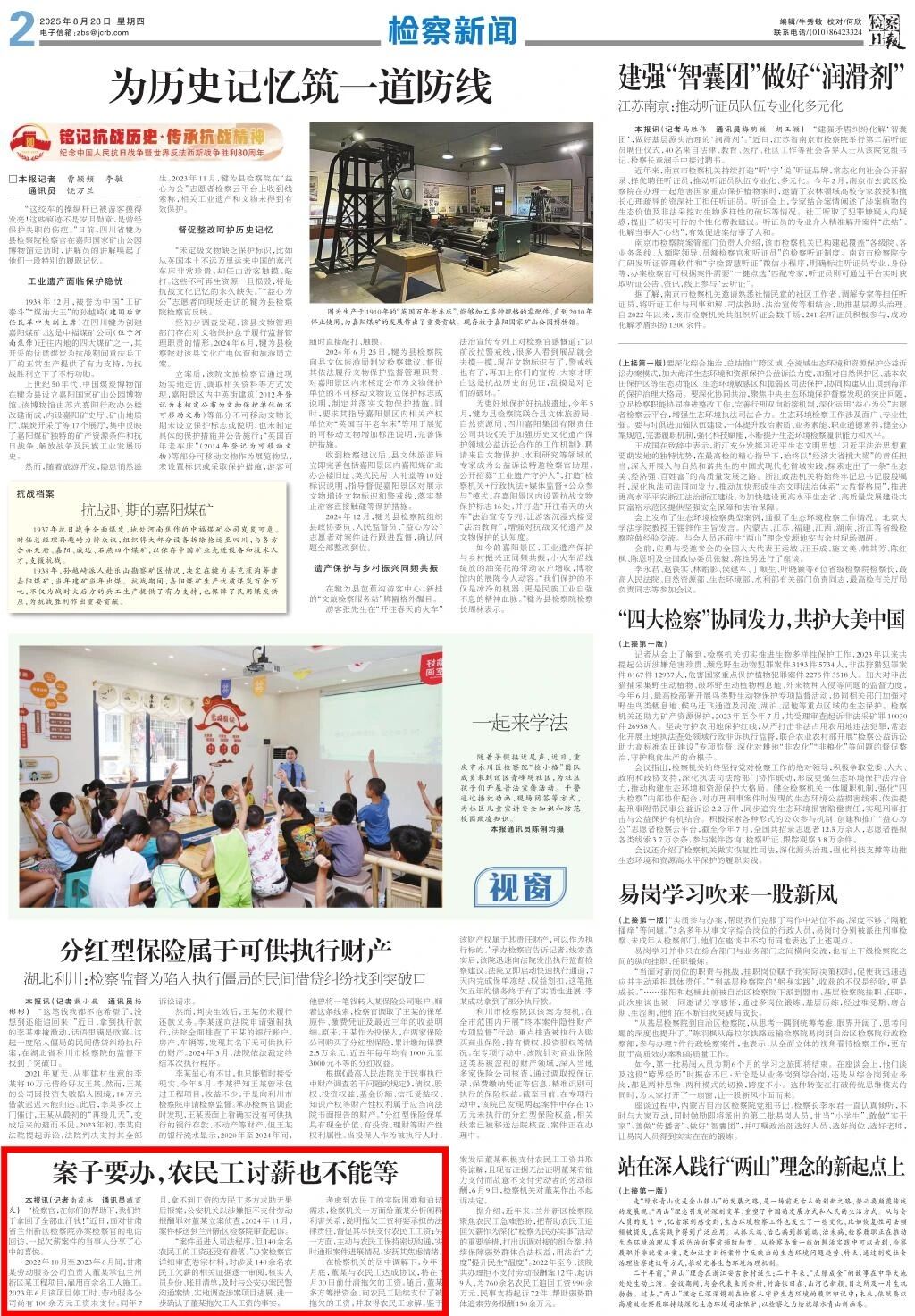 2025年8月28日,检察日报刊发《案子要办,农民工讨薪也不能等》。
