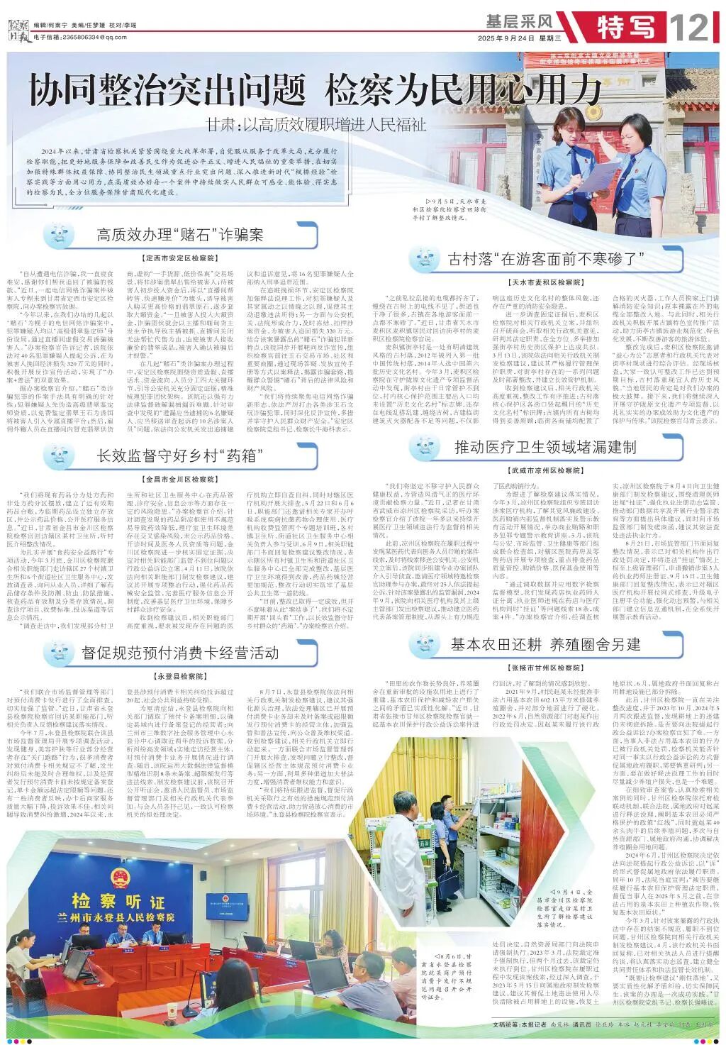 2025年9月24日,检察日报《协同整治突出问题 检察为民用心用力 甘肃:以高质效履职增进人民福祉》专版刊发《天水市麦积区检察院:古村落“在游客面前不寒碜了”》。