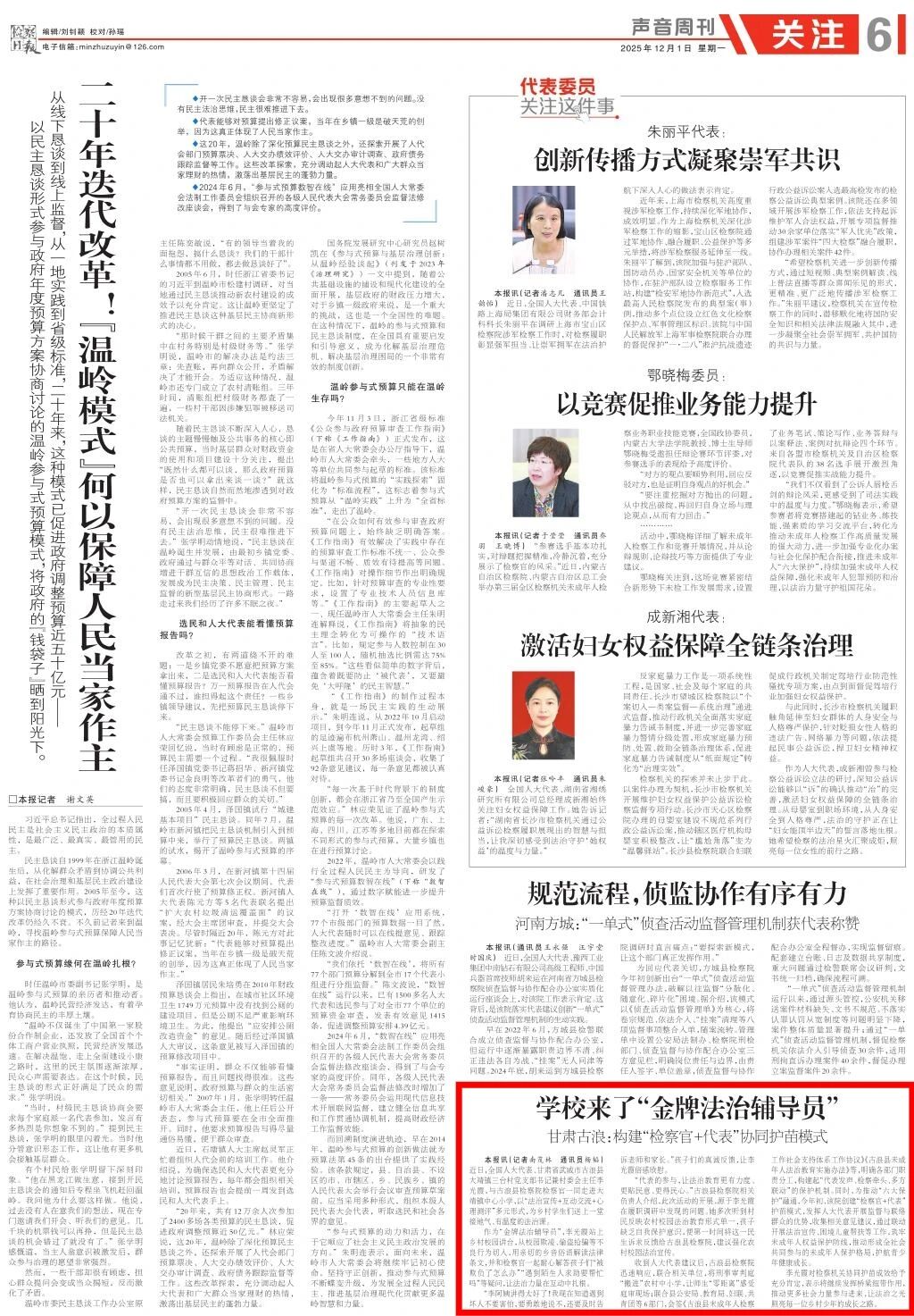 2025年12月1日,检察日报声音周刊刊发《学校来了“金牌法治辅导员”——甘肃古浪:构建“检察官+代表”协同护苗模式》。