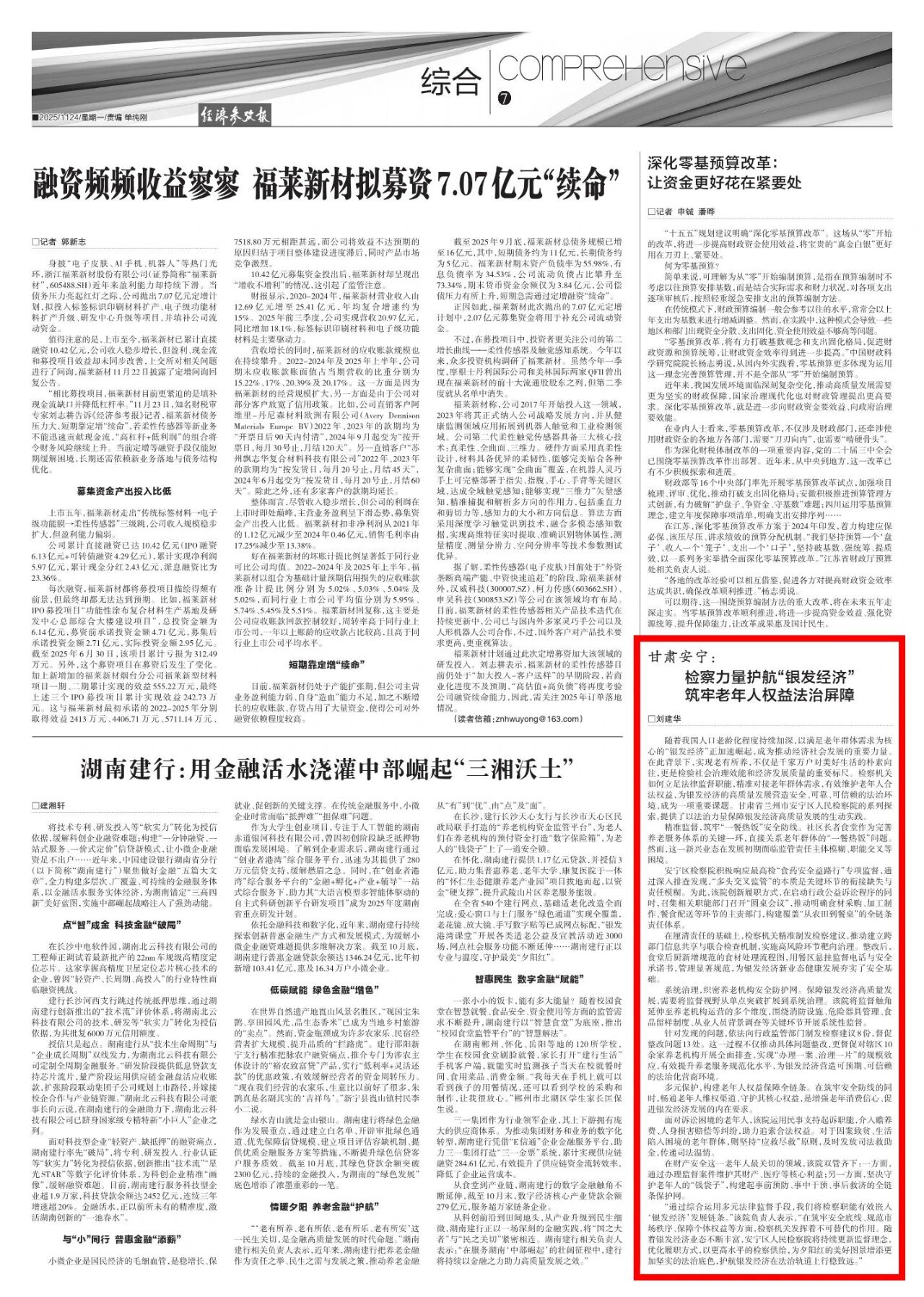 2025年11月24日,经济参考报刊发《甘肃安宁:检察力量护航“银发经济” 筑牢老年人权益法治屏障》。