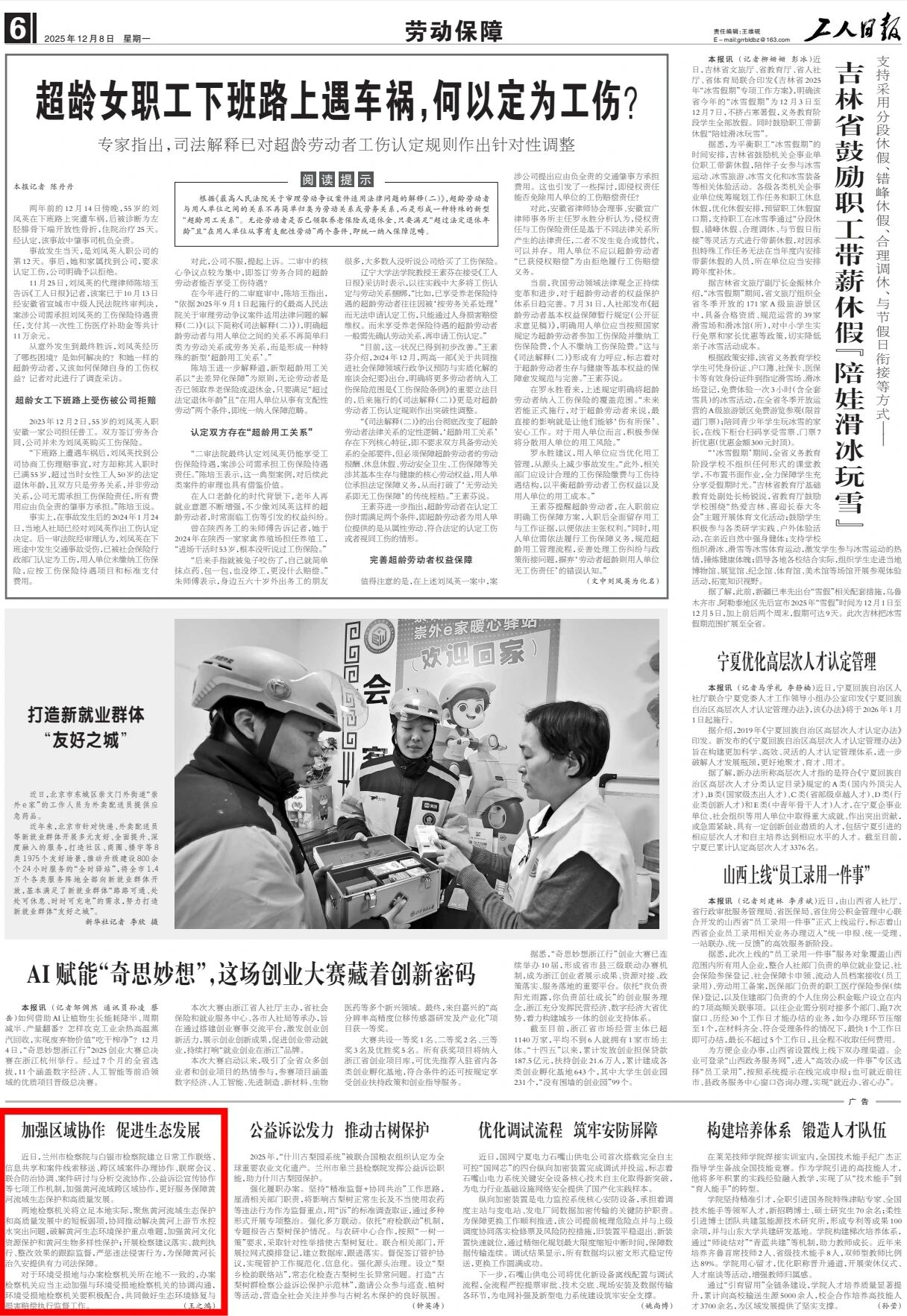 2025年12月8日,工人日报刊发《加强区域协作 促进生态发展》。