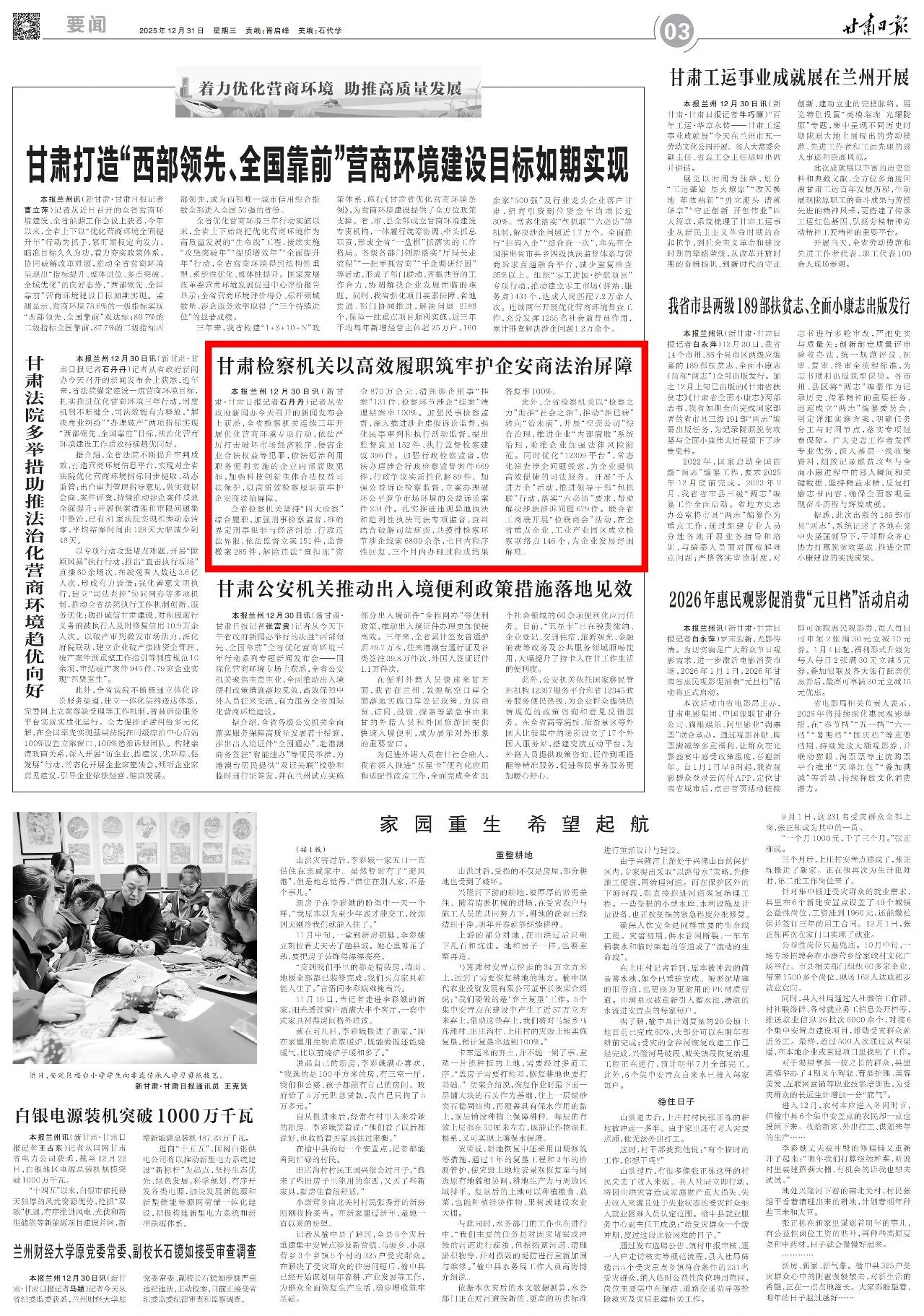 2025年12月31日,甘肃日报刊发《甘肃检察机关以高效履职筑牢护企安商法治屏障》。