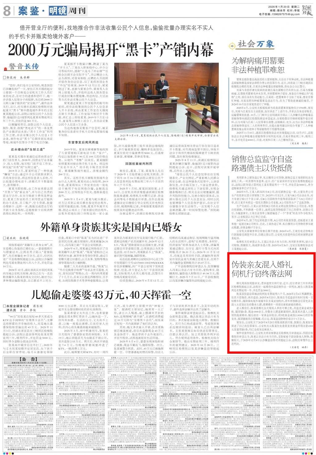 2026年1月20日,检察日报明镜周刊刊发《伪装亲友混入婚礼 伺机行窃终落法网》。