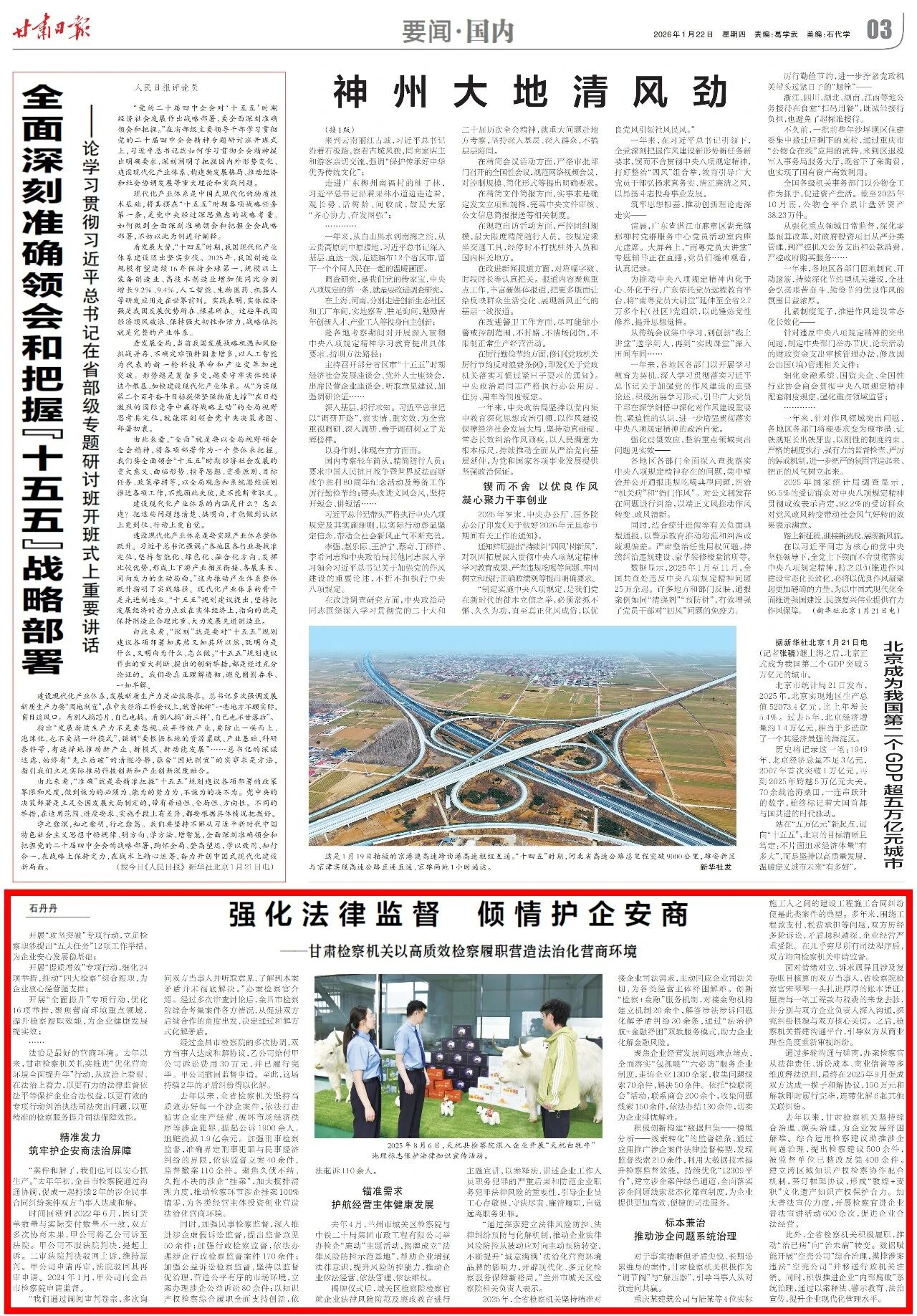 2026年1月22日,甘肃日报刊发《强化法律监督 倾情护企安商——甘肃检察机关以高质效检察履职营造法治化营商环境》。