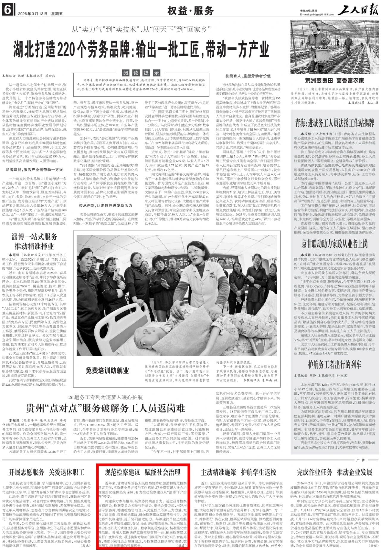 2026年3月13日,工人日报刊发《规范检察建议 赋能社会治理》。